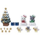The Persian Cat sisters Skye and Layla are setting out for an enchanting night of carol singing, joined by their baby siblings in adorable angel outfits. The snow-covered Christmas tree can be decorated with the golden ornaments included.